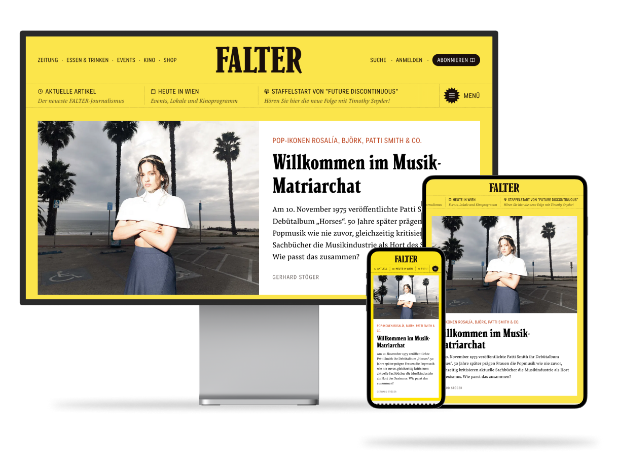 FALTER.at liefert Artikel der Wochenzeitung, den größten Lokalführer Österreichs, urbane Tipps, interaktive Specials und ein vielseitiges Eventprogramm.