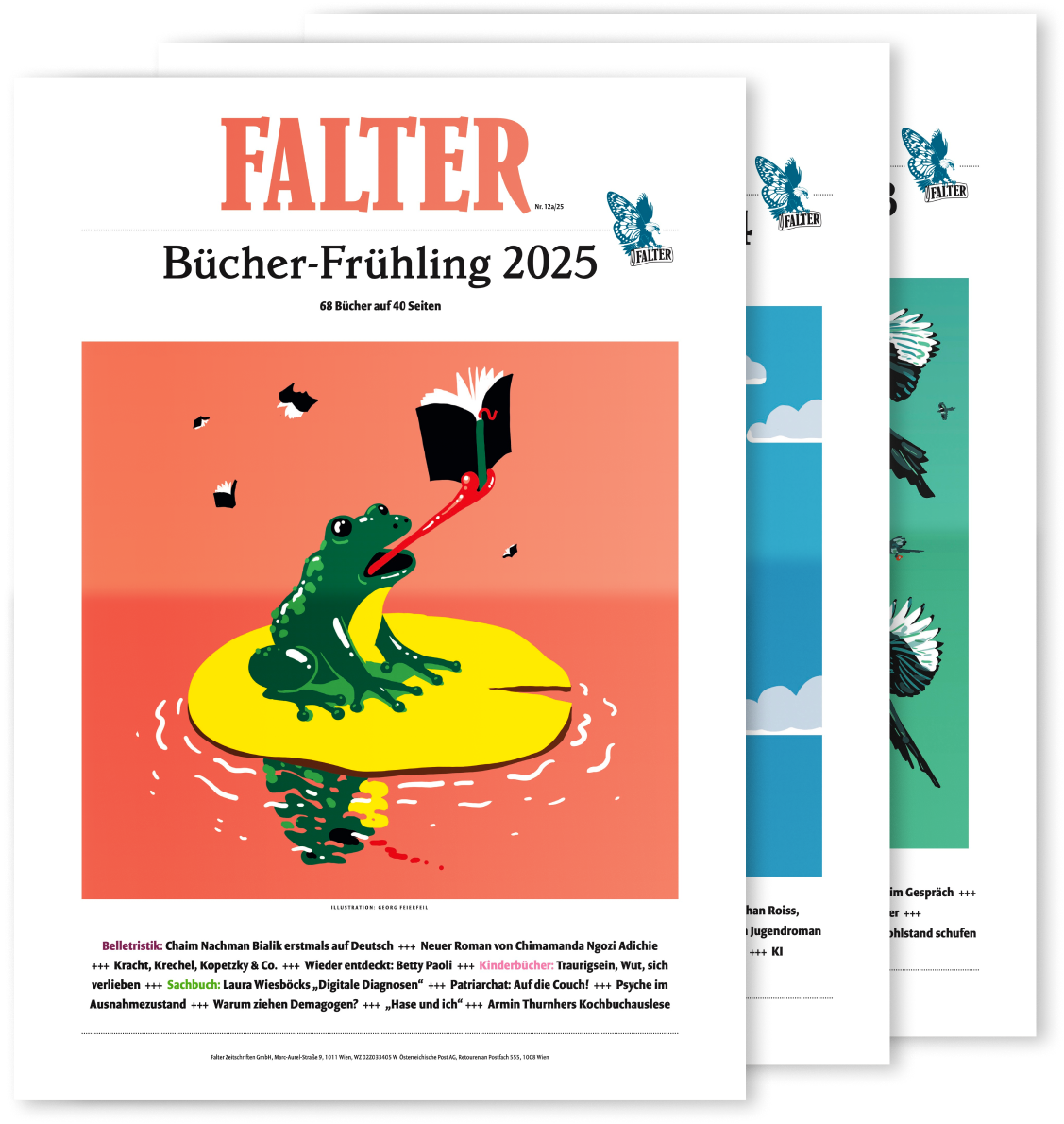 Druckauflage: 46.000 Stück als Beilage im FALTER, sowie 20.000 Stück an Buchhandlungen in Österreich und Deutschland sowie auf den Buchmessen in Wien, Leipzig und Frankfurt